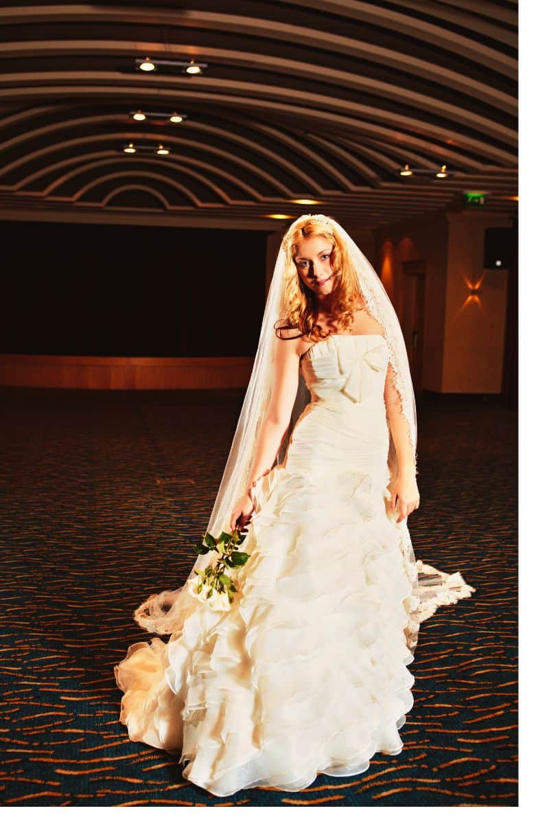 Her work is distinguished by the use of sumptuous fabrics and laces sourced from personal trips to NYC to ensure her gowns that are both spectacular to behold and comfortable to wear.